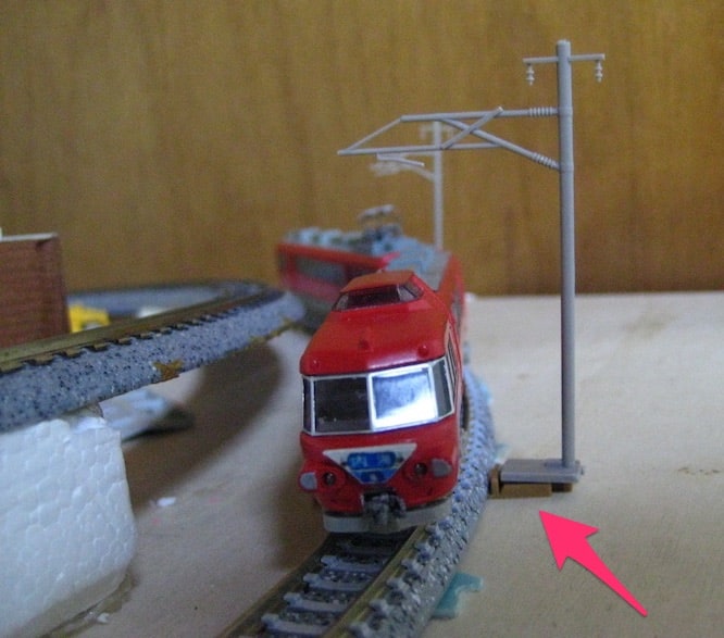 先日とあるリサイクルショップへ行ったら、茶色道床時代のTOMIX架線柱を200円切るお値段で発見。