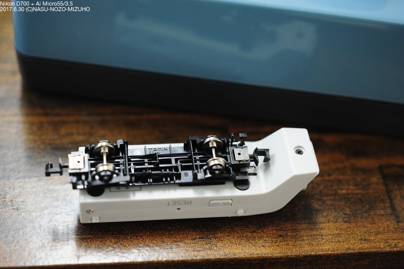 出っ張りはNゲージでは車両限界に引っかかるのでこれは除去します。HOゲージなら加工は不要です。