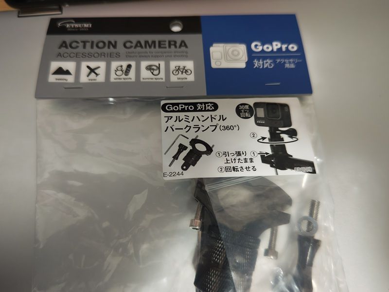 マウントはエツミのバークランプを選択。360°回転可能、アルミ製で耐久力も高そうでしたので。