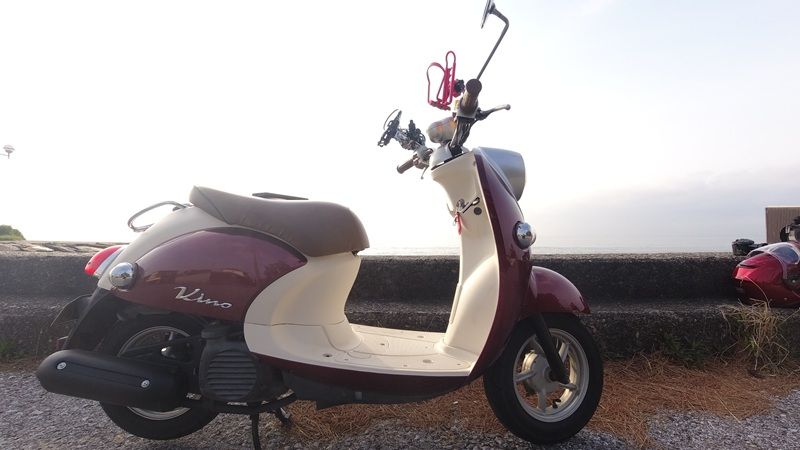 内蔵バッテリーは2時間せずに空っぽになってしまうので、モバイルバッテリーから電源供給できればと思うのですが、ビーノの車体ではなかなか固定する部分がありません。