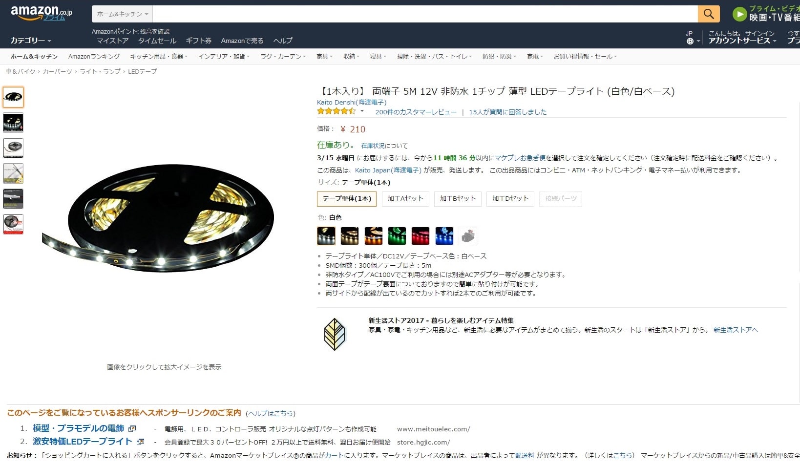 テープLEDはアマゾンで200円ちょっとでなんと5m(50両分)入手可能。