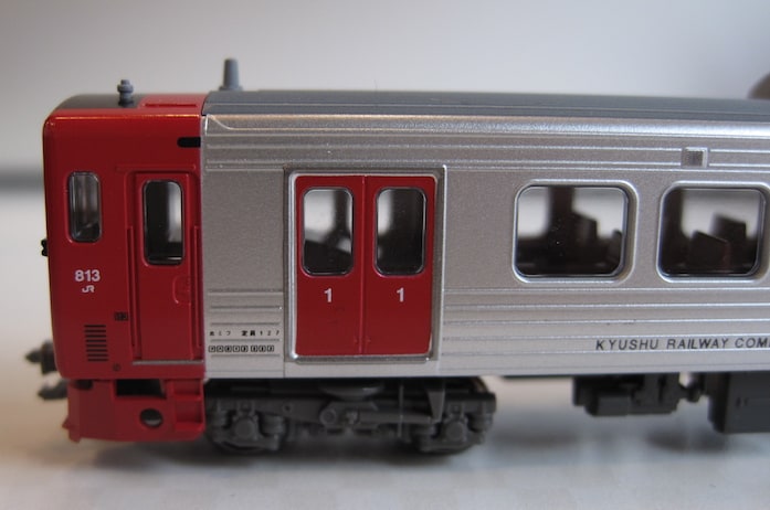 ちなみに門司港寄りのパンタ付車両は実は制御車(クハ)で、大牟田寄りの先頭車がクモハで模型でもこちらがM車です。パンタありなのにクハな車両は交流型ではたまにありますね(521系とか)