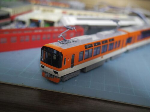 楽天のホビーランドぽちの通販で、衝動買い!KATOの叡山電車900系「きらら」のメープルオレンジ色の旧製品(2001年ロット)を買ってしまいました。パノラマ窓を備えたかわいい電車がよく再現されています。