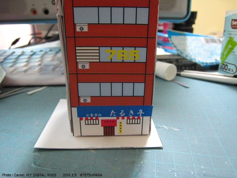 765プロダクションは色々モデルがあるようですが、これのモデルはアニメ版のもので1階にたるき亭、3階に765プロが入居しています。