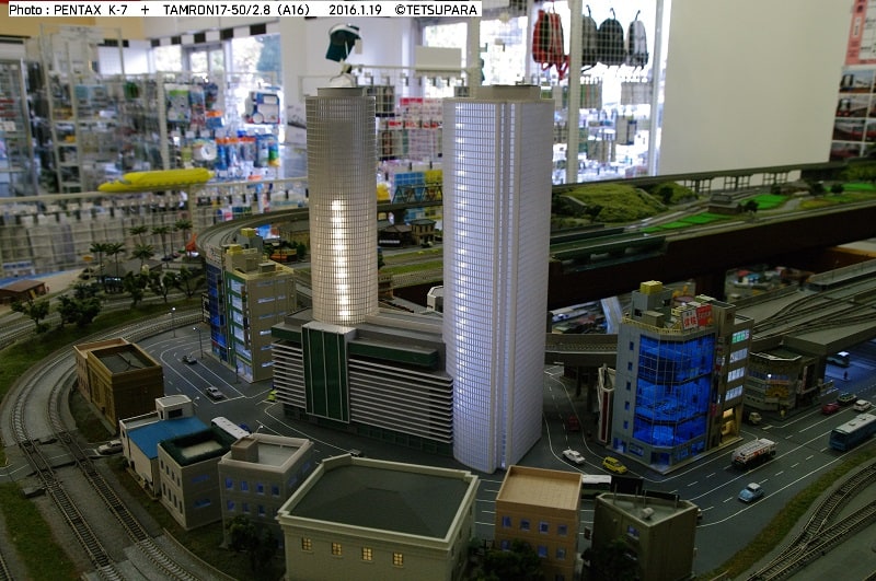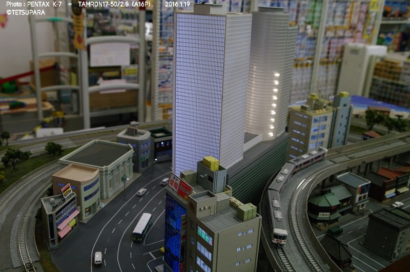 こちらはKATOのビルが2棟並んでいますが、中も机・椅子・フィギュアが配置されており、リアリティーを感じさせてくれます。