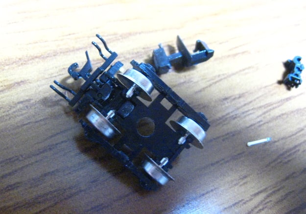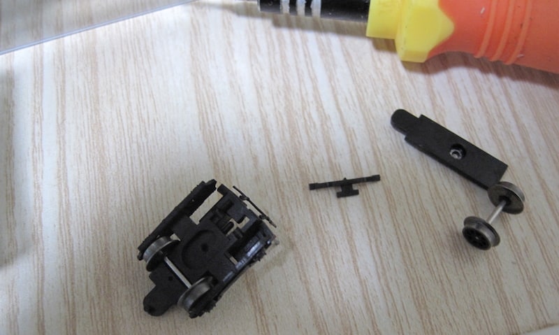 マイクロの先台車はネジ止めされているため、分解と組付にプラスドライバーを必要とします。